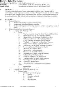 Students complete a unit on poetry. In this poetry lesson, students complete 19 lessons that focus on reading and writing poetry as well as learning about literary elements and sound devices. Students read poetry orally, debate poetry in...