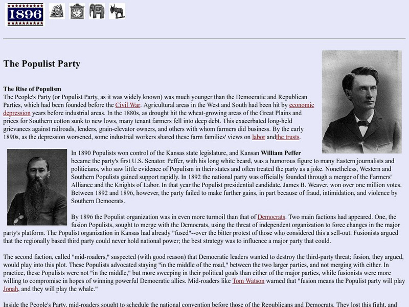 This great resource from 1896, A Website of Political Cartoons from Vassar College discusses "The Rise of Populism" to "The End of Populism--or Not?"