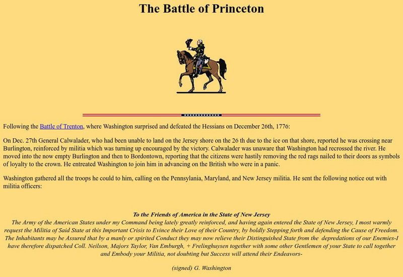 The Battle of Princeton follows the Battle of Trenton in the New Jersey Campaign. Read a detailed history of the event here.