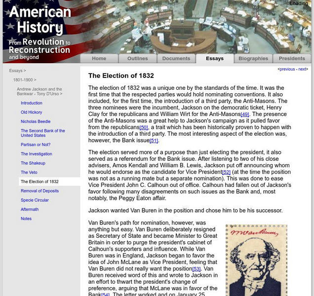 American History: Essays: Andrew Jackson and the Bankwar: Election of 1832