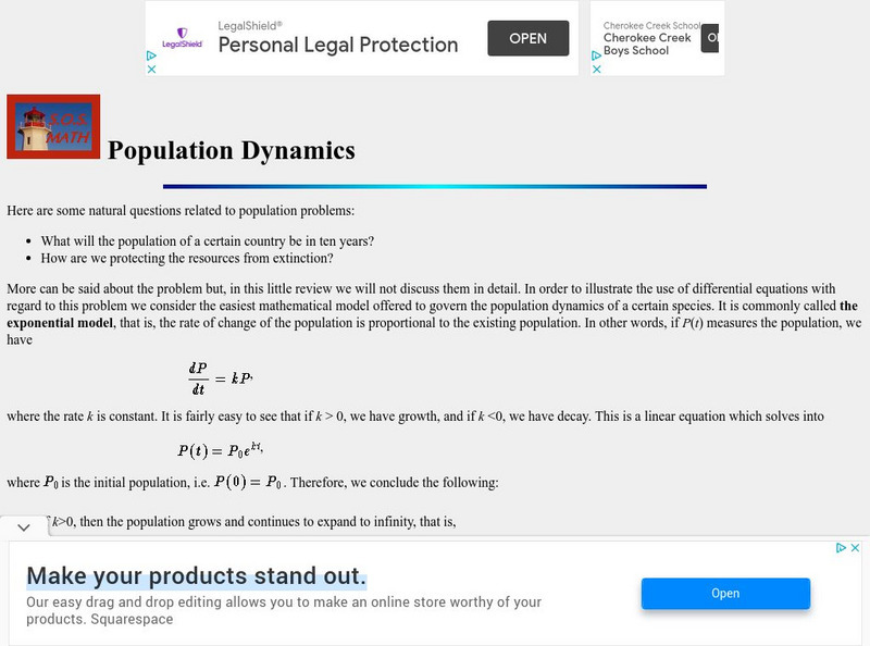 S.o.s. Math: Differential Equations/population Dynamics