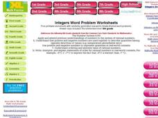 In this integer worksheet, students solve 12 problems, adding integers. Answers and hints are available on-line; a reference web site for additional resources is given.