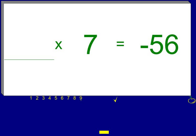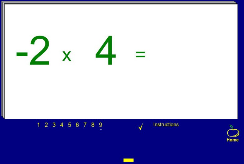 Students type the correct positive or negative number to complete the multiplication problems on these interactive flashcards. The problem changes color when the correct number is typed.