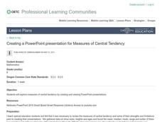 Students analyze data using central tendencies. In this statistics instructional activity, students collect and analyze data using the mean, median and mode. They create a power point representing the different measures of central tendency.