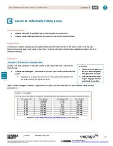 What linear equation will fit this data, and how close is it? Through discussion and partner work, young mathematicians learn the procedure to determine a regression line in order to make predictions from the data.