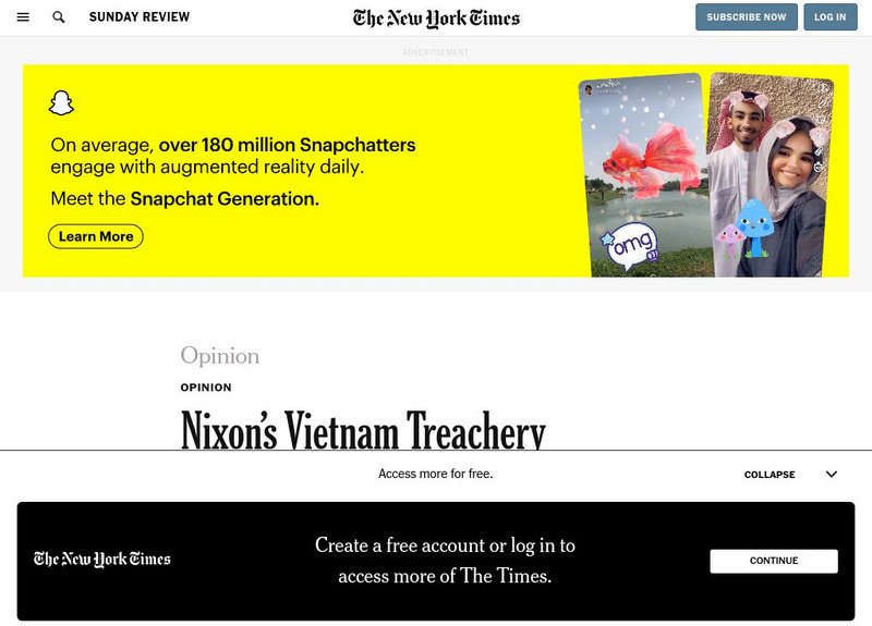 [Free Registration/Login Required] This article describes how Richard Nixon jeopardized Lyndon B. Johnson's Vietnam peace initiative in 1968 in order to win the presidential election that year. This information is based on documents...