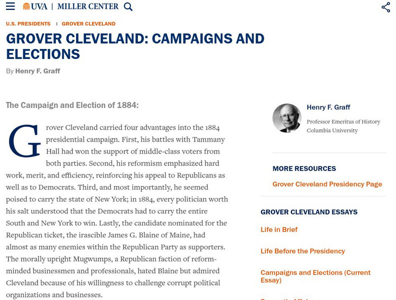 Miller Center at Uva: u.s. Presidents: Grover Cleveland: Campaigns and Elections