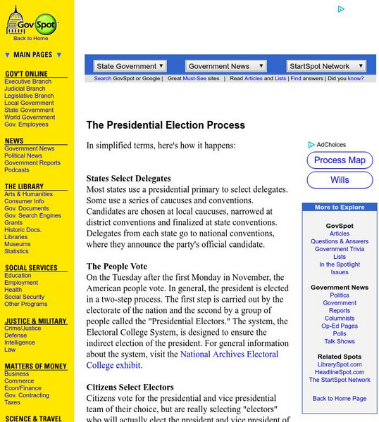 Provides information on the Electoral College and how we use this system to elect the President of the U.S. Features links to much more information on the election.