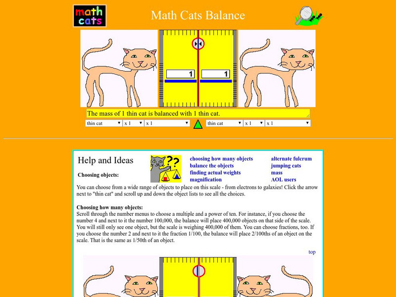 Use this interactive activity to learn about weights, balance and basic mathematics. With problem solving and math skills solve the questions about how many objects will balance out on the interactive scales.