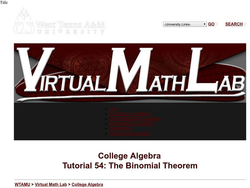 Wtamu Virtual Math Lab: College Algebra: The Binomial Theorem