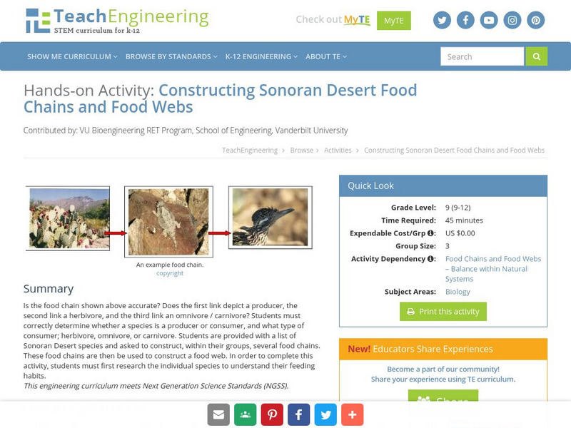 Teach Engineering: Constructing Sonoran Desert Food Chains and Food Webs