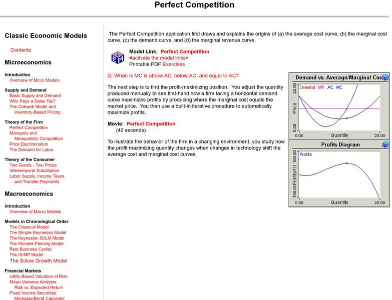 This site shows cost curves for a firm in a perfectly competitive market, and has an interactive graph to show what their profit margin is at various levels of production.