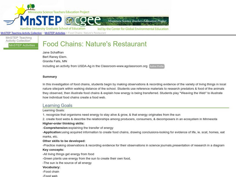 This activity is designed to accompany an interactive on the Annenberg Learner website. Students investigate the changes that take place in an ecosystem when they alter the organisms in a food web. As they work with the simulation, they...