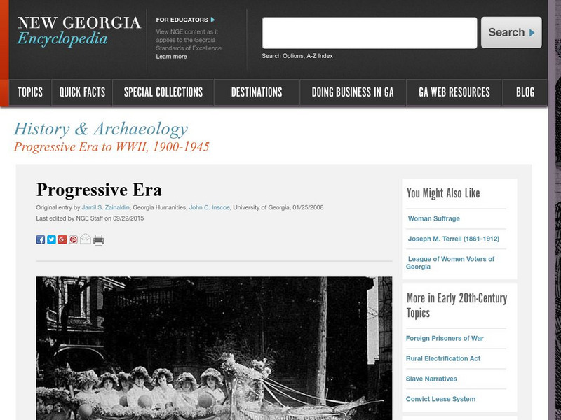 A good overview of the reforms that were instituted not only in Georgia, but in the entire country during the Progressive Era. Read a history of the beginnings of progressivism, the people involved, and a recounting of the various...