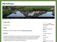 Help a company maximize their profits! A detailed project-based learning activity examines two production scenarios. Your young scholars write a linear demand function. They then apply the function to develop a revenue, cost, and profit...