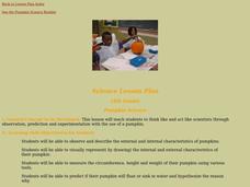 Fourth graders examine pumpkins and use the scientific method to explore its contents. In this Pumpkin Science instructional activity, 4th graders measure pumpkins for circumference. Students dress as if they were in a lab and work...