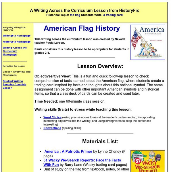 In this cross-curricular activity, young scholars create a trading card based on the symbols of the American flag, or any other national landmark. Writing for a specific purpose helps students carefully select their word choice.