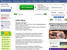 Students examine the difference of squares equation, and multiply binomials using the FOIL method. They complete the Case of the Missing Middle Term worksheet.