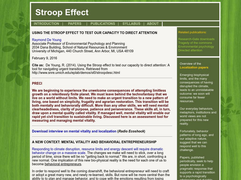 University of Michigan: Stroop Task (A Test of Mental Vitality and Flexibility)