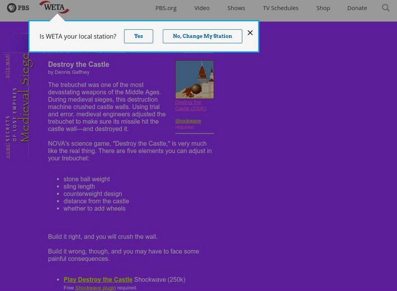 Design your own trebuchet catapult, launch the sandstone balls, and destroy the castle. Decide on the size of your projectiles, where to place your trebuchet, and other factors critical to success.