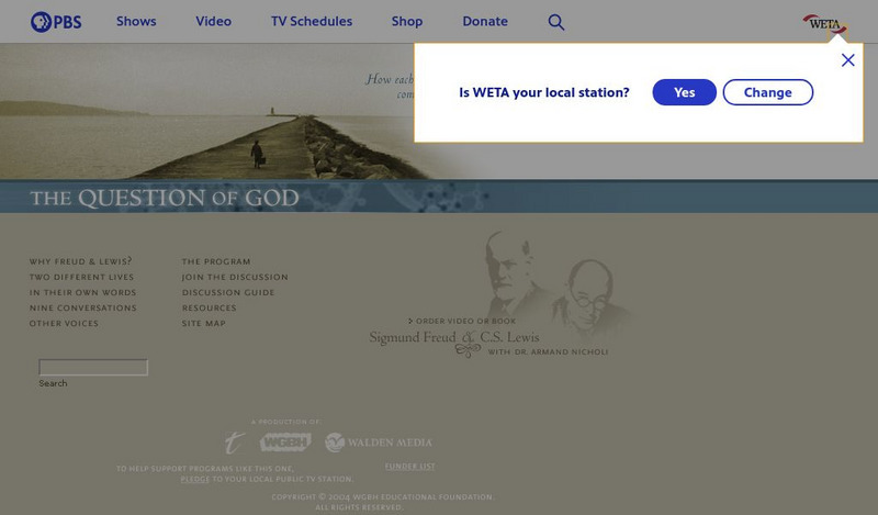 Website providing information and additional resources for a four-hour series called The Question of God: C.S. Lewis and Sigmund Freud Debate God, Love, Sex, and the Meaning of Life, by Dr. Armand Nicholi. Includes facts about and works...