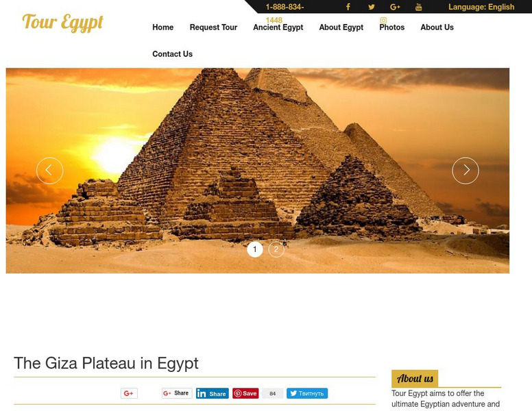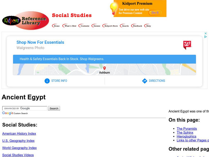 Experience the pyramids, the Sphinx and Egyptian hieroglyphics all on one page. Students can see colorful pictures and read about the history behind them.