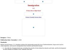 Students explore the concept of immigration. For this immigration lesson, students read literature, analyze photographs, and evaluate political cartoons that reflect feelings about immigration in America during Industrialization....