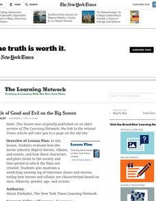 Students evaluate how the movie industry depicts heroes, villains, and events, and how these characters and plots relate to the society and time period in which the films are created.