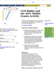 Students examine and discuss the 14th and 15th amentments, and evaluate the agendas of Americans from underrepresented groups in the quest for civil rights. They conduct Internet research and create essays or posters regarding Civil Rights.