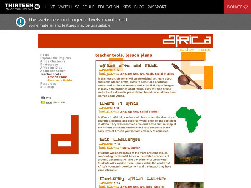 Wnet: Thirteen: Africa Teacher Tools: Lesson Plans