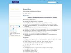 Students discover how psychologists complete their research on different topics. In groups, they describe the elements of an experiment and the importance of sampling during research. They identify ethical issues in their research and...