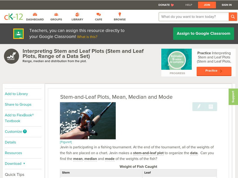 Ck 12: Statistics: Stem and Leaf Plots, Mean, Median, and Mode
