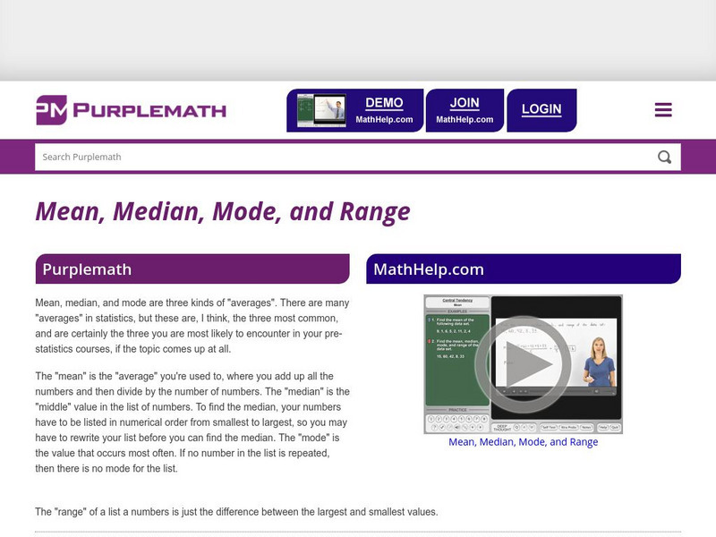 Purplemath: Mean, Median, Mode, and Range