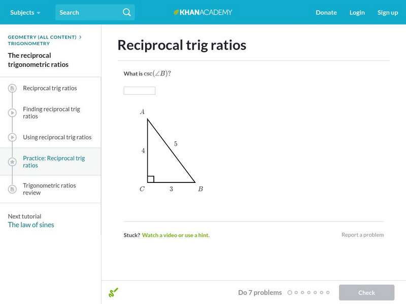 Understand the right triangle definition of sec, csc, and cot ratios. Students receive immediate feedback and have the opportunity to try questions repeatedly, watch a video or receive hints.