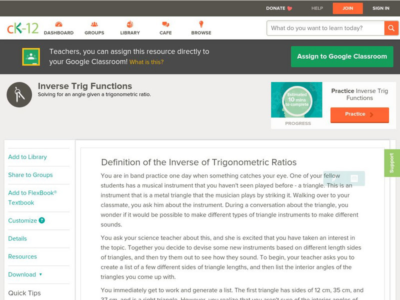 [Free Registration/Login may be required to access all resource tools.] Explain the inverse of trigonometric functions.