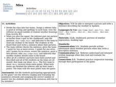 Students examine pictures and write sentences describing the weather in Spanish. In teams, they compete to discover which team can write a correct sentence faster. They practice evaluating the sentences and reading them aloud.
