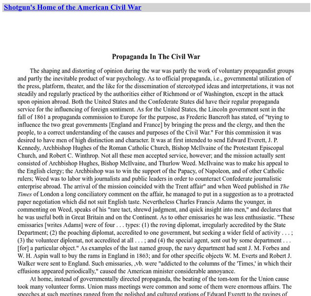 Propaganda was practiced by both the Union and Confederacy. Read the many ways propaganda was used both officially and unofficially. From "The Civil War and Reconstruction" by Randall and Donald.