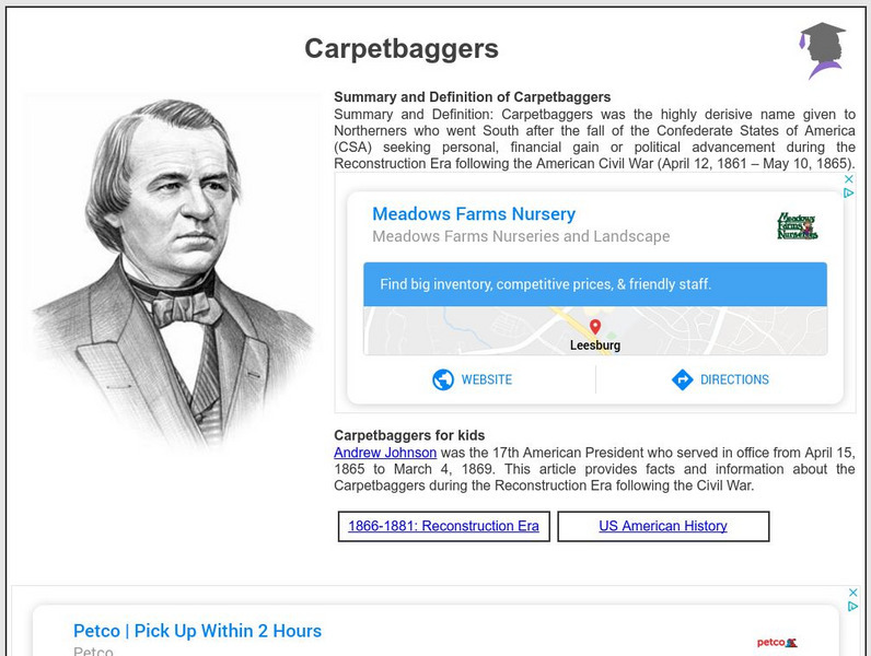 This article provides facts and information about the Carpetbaggers, opportunist Northerners who went to the South during the Reconstruction Era following the Civil War.