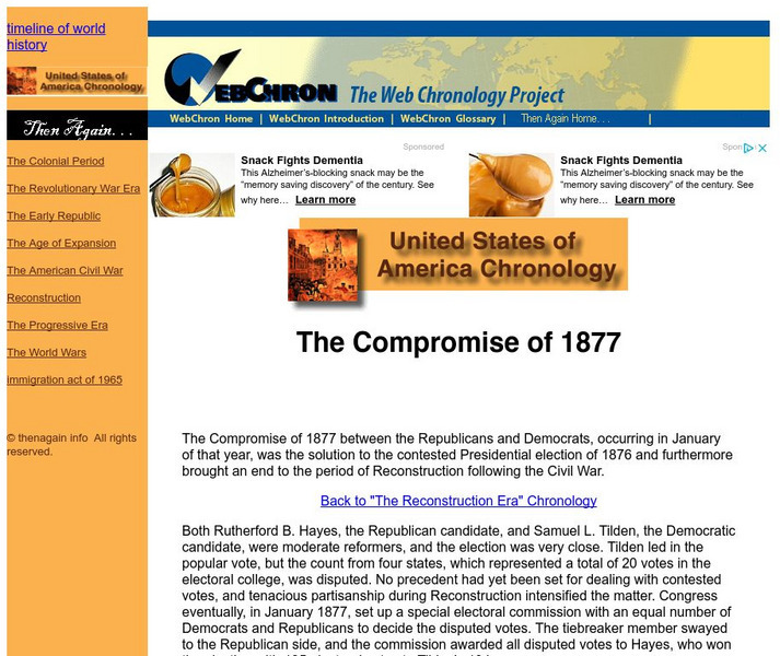 Discusses the Compromise of 1877 between the Republicans and Democrats, which was the solution to the contested Presidential election of 1876. It also brought an end to the period of Reconstruction following the Civil War.