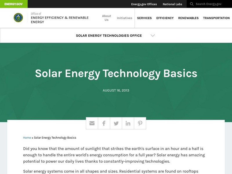 U.s. Department of Energy: Energy Basics: Renewable Energy: Solar Energy