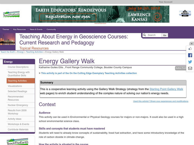 A cooperative learning activity using the Gallery Walk Strategy to enrich student understanding of the complex nature of solving our nation's energy needs.