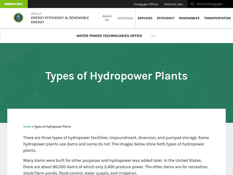 U.s. Department of Energy: Water Power Program: Types of Hydropower Plants