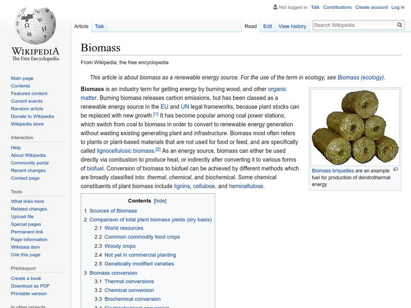 Learn about "biomass," organic non-fossil material of biological origin. Includes external links.