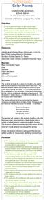 Students listen as the teacher reads several poems from the book "Hailstones and Halibut Bones," "My Many Colored Days," and a teacher created poem. Students choose a color and share some brainstorming ideas with the class. They write a...