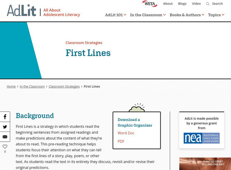 Ad lit.org: Classroom Strategies: First Lines