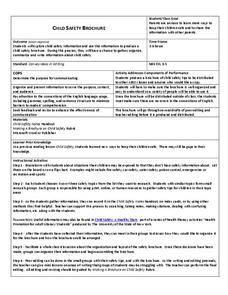 Students practice communication skills through brochure writing. In this child safety brochure lesson plan, students gather important child safety information and rewrite it into a brochure. Students must use correct...