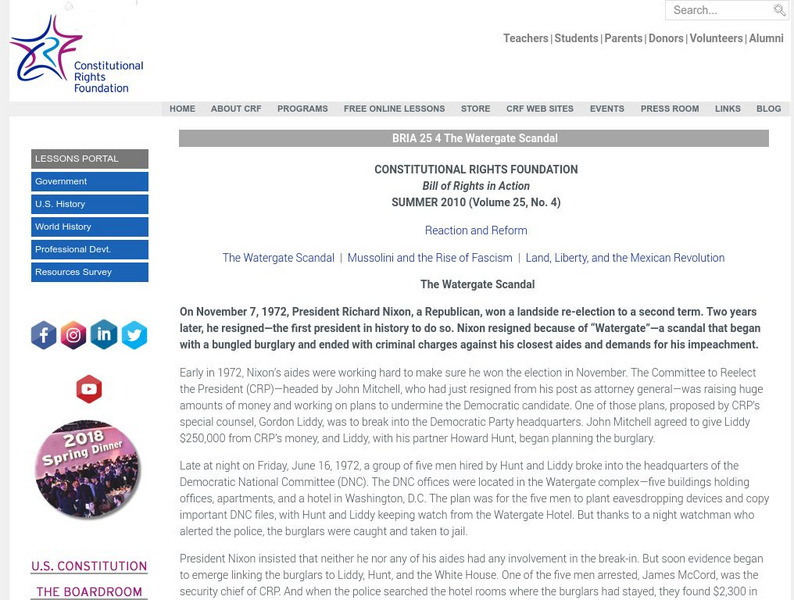 Constitutional Rights Foundation: Reaction and Reform: The Watergate Scandal
