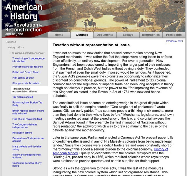American History: Outlines: Taxing and Representation