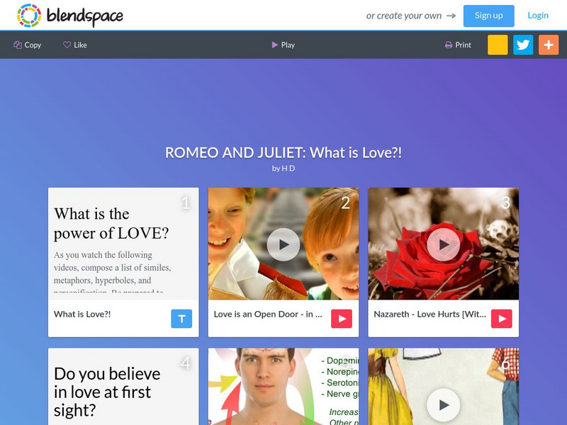 A twelve-part learning module with links to videos, texts, and images that explore the idea of love to go along with William Shakespeare's Romeo and Juliet.