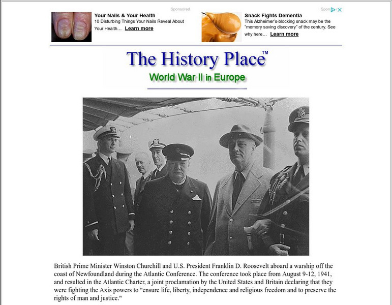 This site from The History Place provides a brief summary of the Atlantic Charter. Includes photo of Roosevelt and Churchill. A link is also provided to return to the WWII timeline for additional information on related subjects.